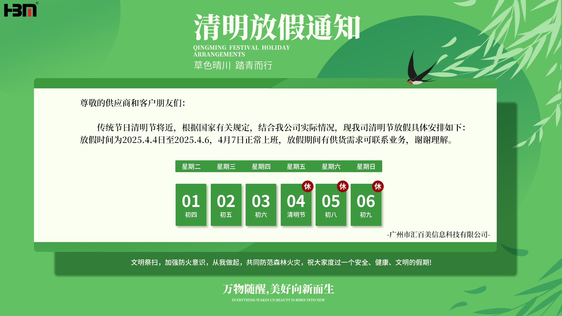 匯百美2025清明節放假通知